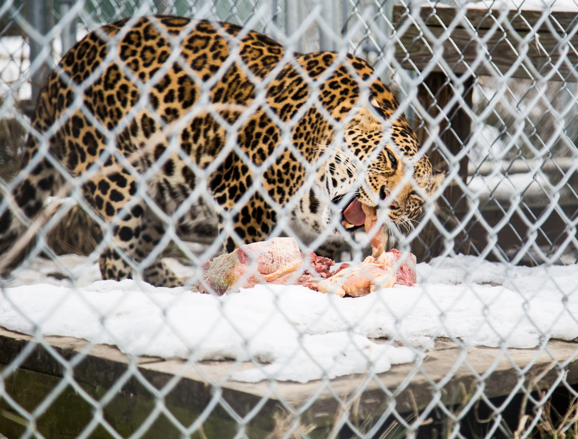 The leopards are occupying a shift space, which is an enclosure constructed to house the animals for a short period of time while they eat, to allow volunteers and keepers to enter the main habitat and clean safely, says Kasey Thornton, the communications supervisor for the Conservators Center.