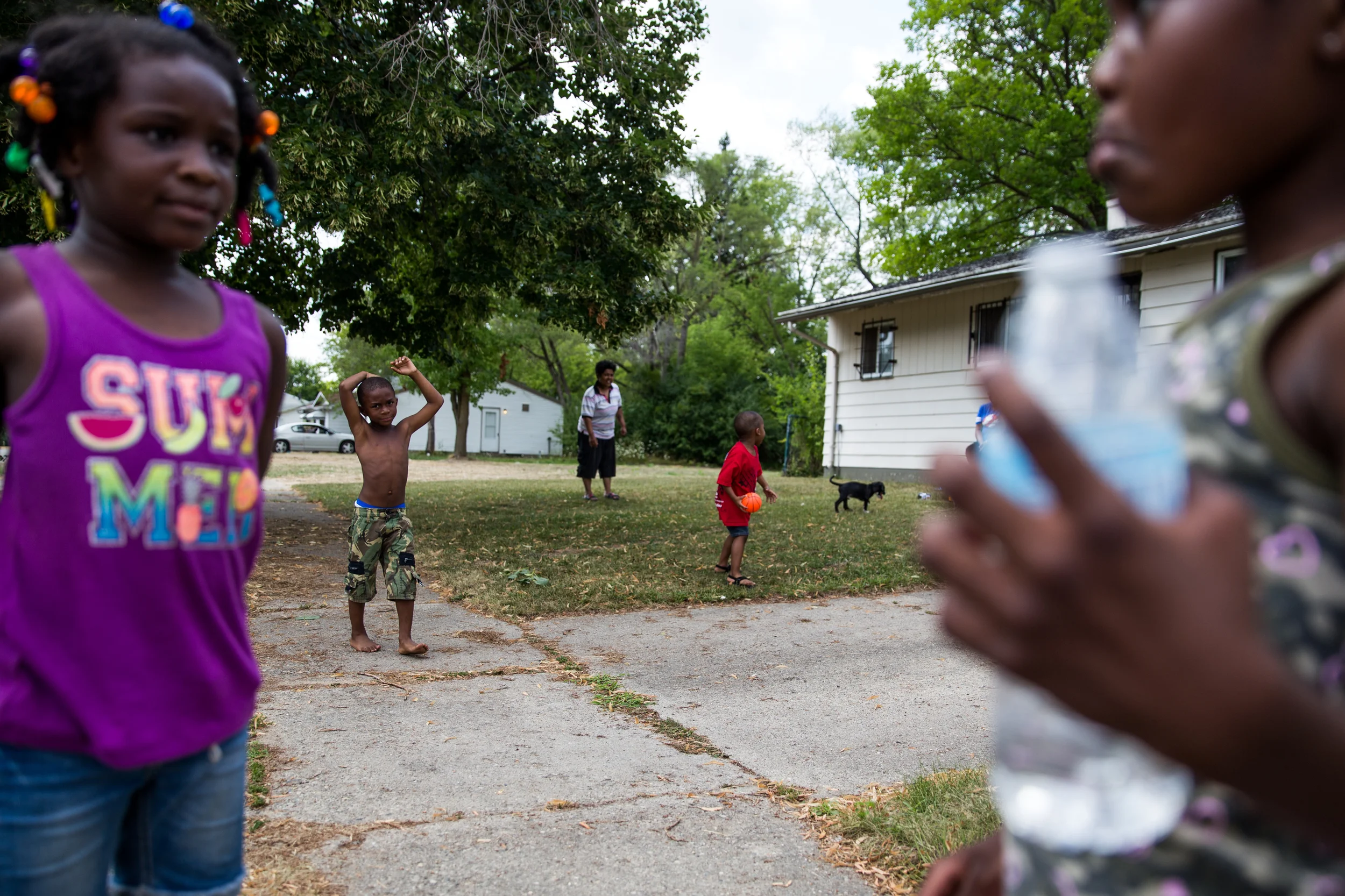 Julia Brown, 8, carries bags of groceries to be distributed while volunteering with her Girl Scout Troop 74022 during the Mobile Nutrition Pantry on Thursday, July 7, 2016 at West Court Street Church of God in West Flint. The Mobile Nutrition Pantry provides a variety of lead-mitigating foods to communities in need of good nutrition and that have limited access to grocery stores.