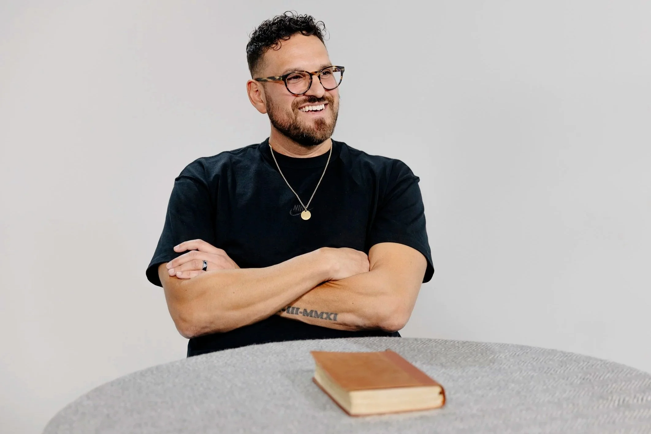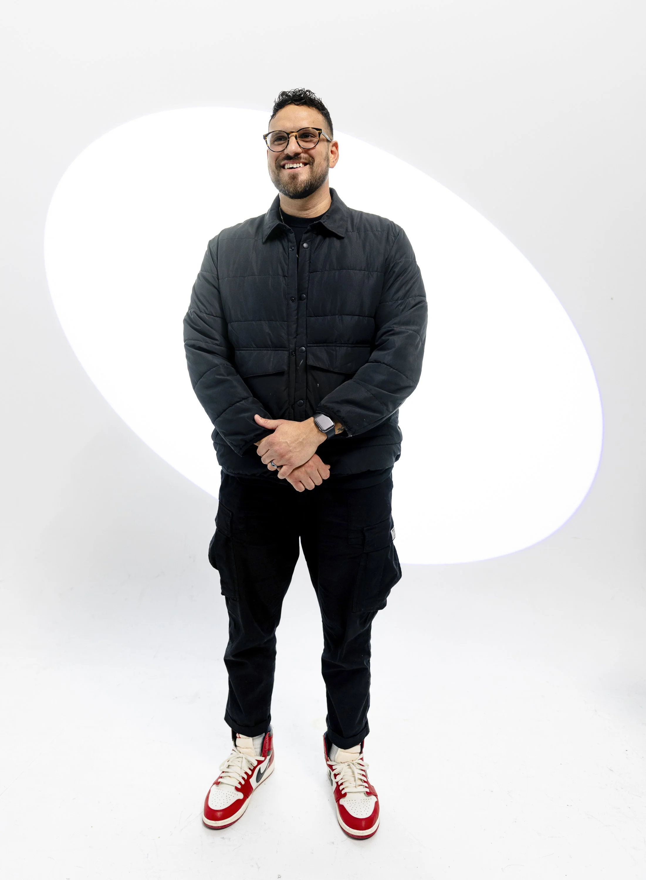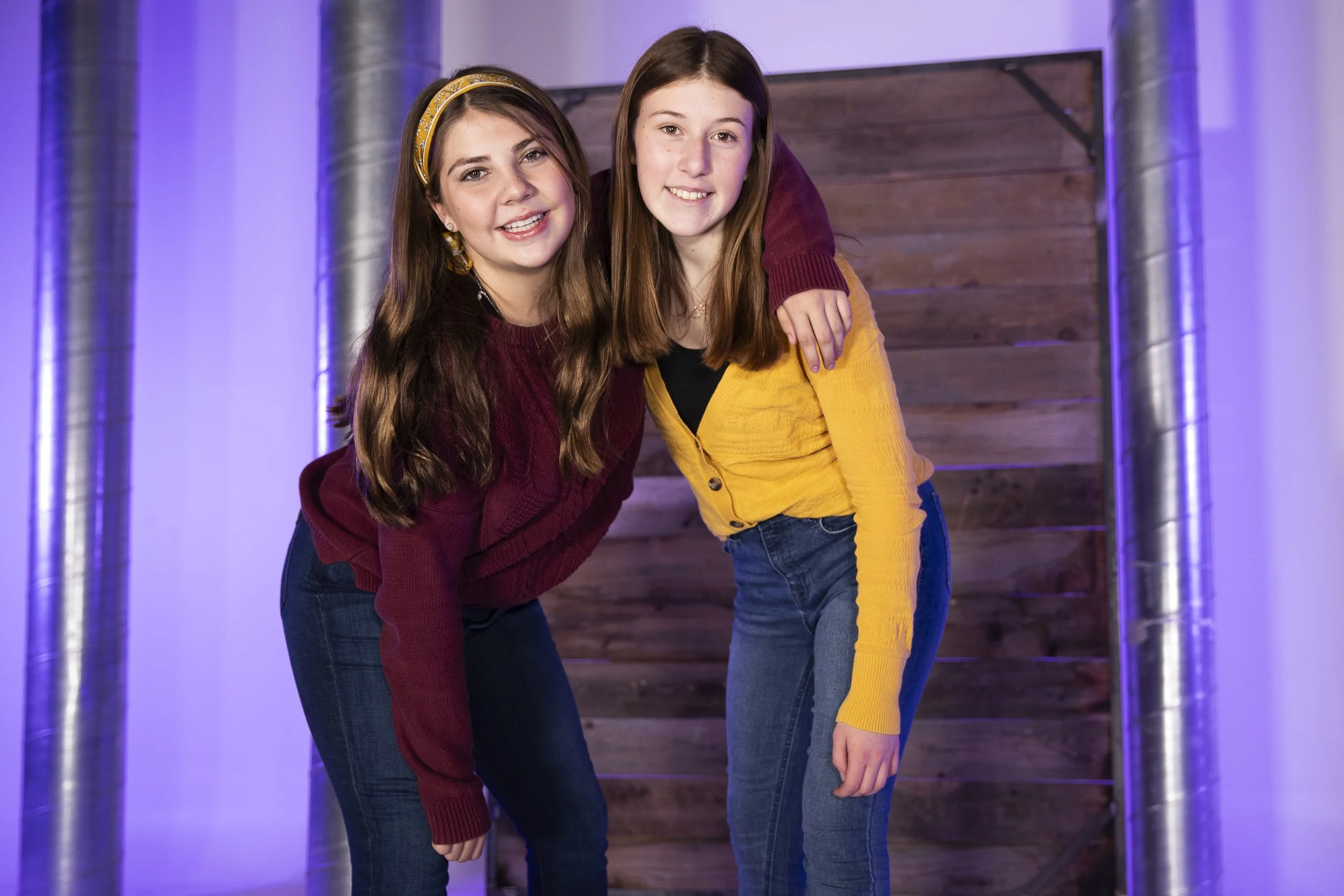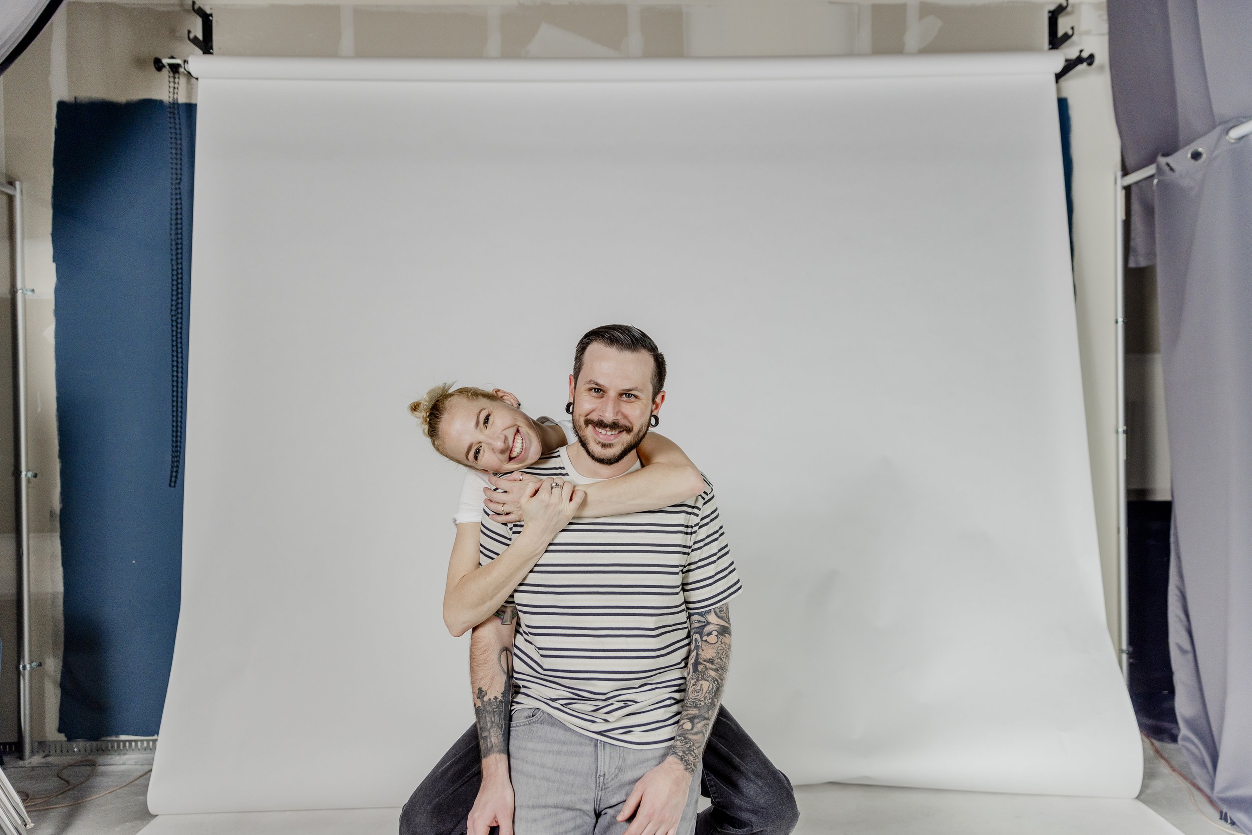 Pop-up studio — white paper backdrop, community outreach family portrait.